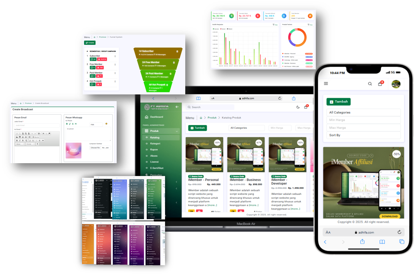 Laporan penjualan, komisi, dan aktivitas member/affiliate langsung terlihat di dashboard, sehingga pengambilan keputusan lebih cepat dan tepat.